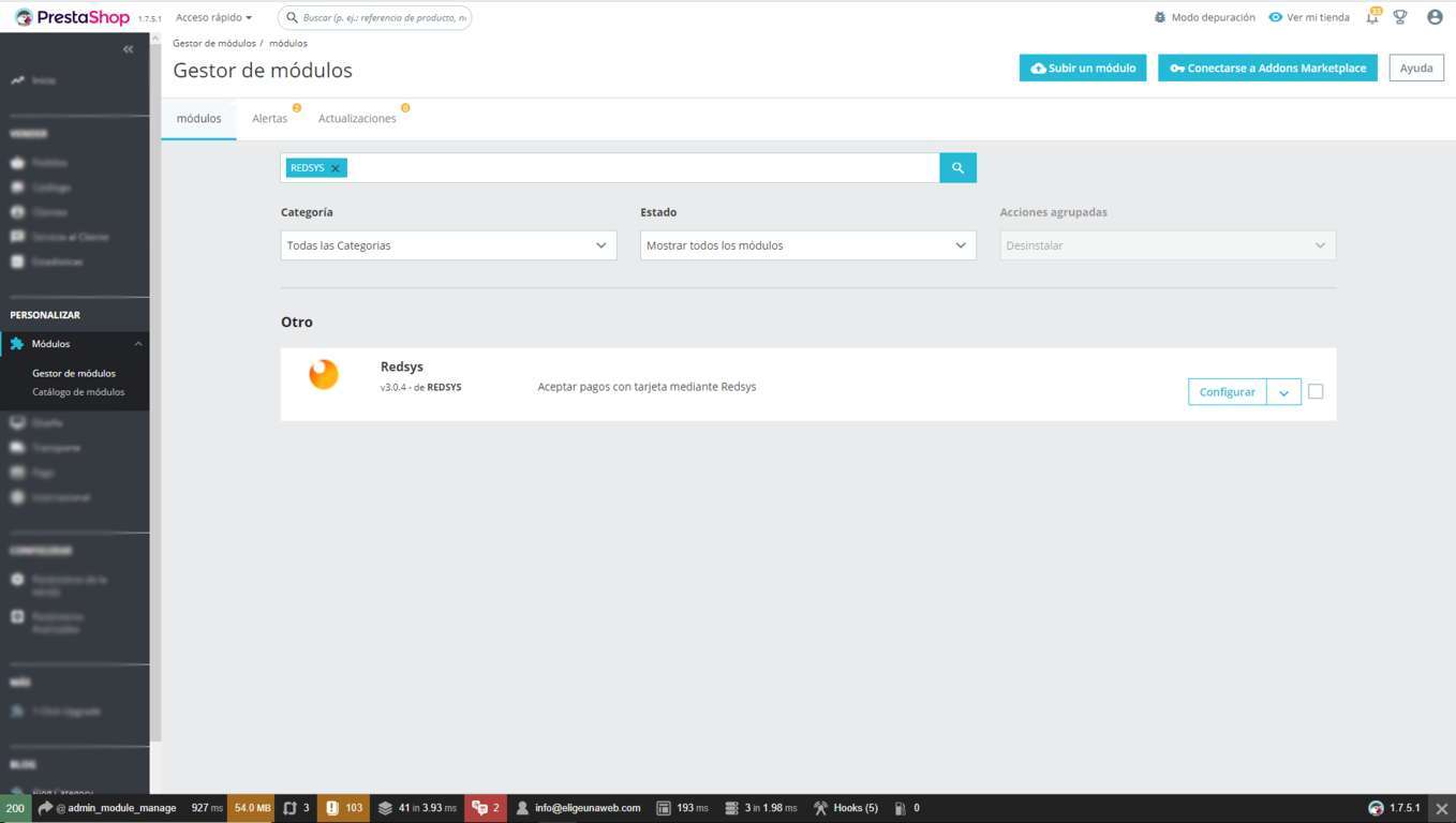 La versión con la que trabaja nuestro cliente es la versión 1.7.5.1 y la versión del modulo es la v3.0.4 y esta versión solo llega hasta el Prestashop 1.7.3. Este modulo no es que hubiera trabajado mal, pero tenía conflictos con la tienda.