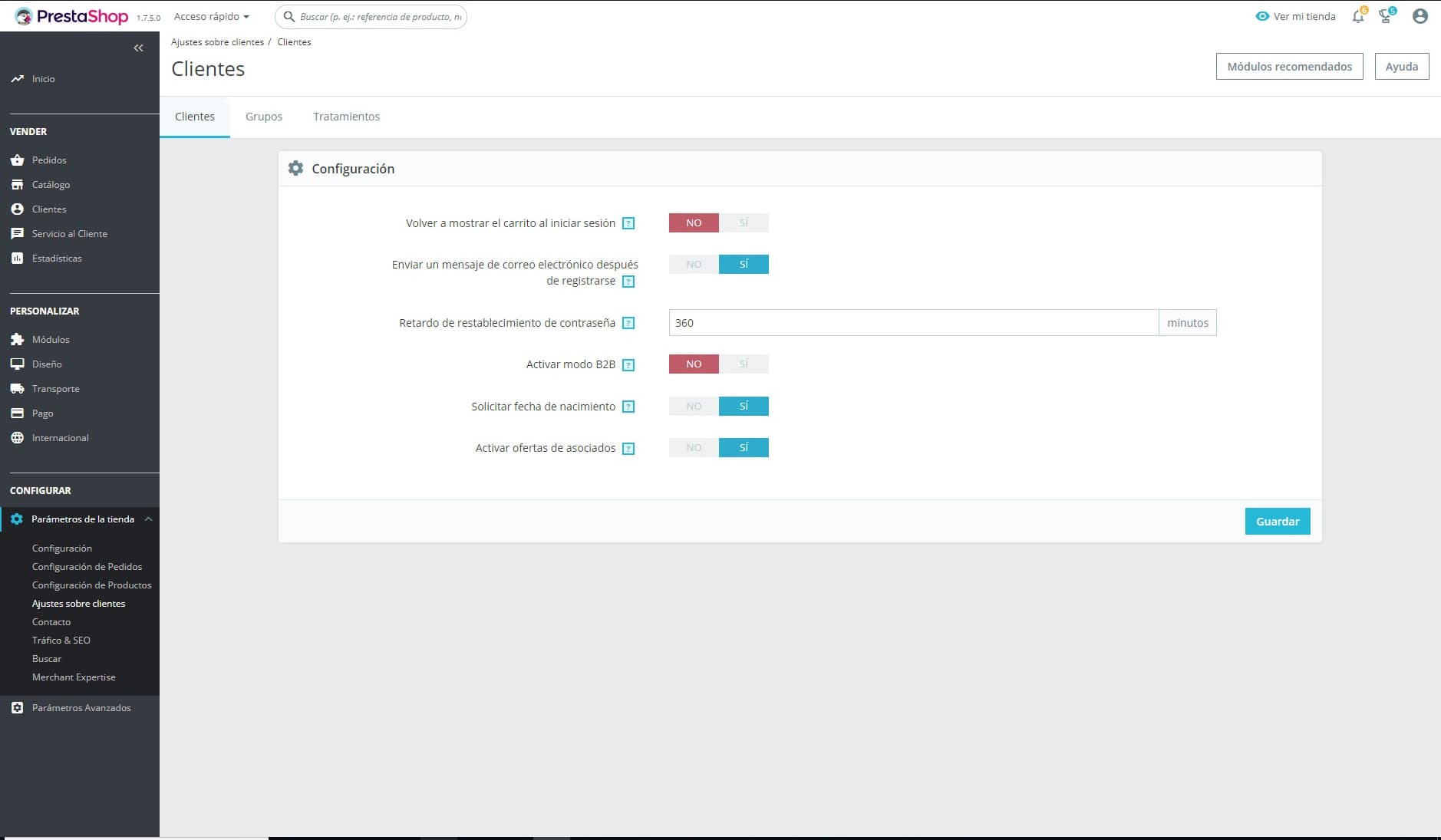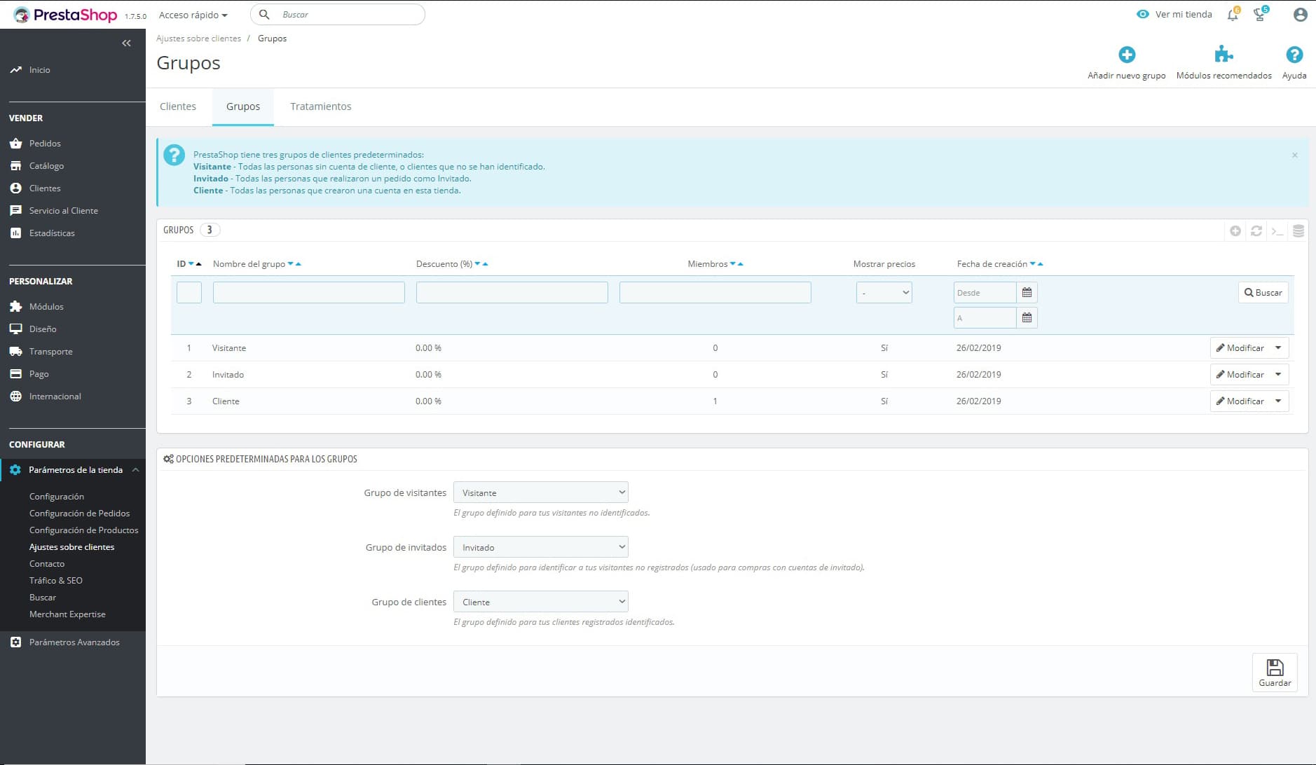 Vamos a “Ajustes sobre clientes” y selecciona la pestaña “Grupos”.