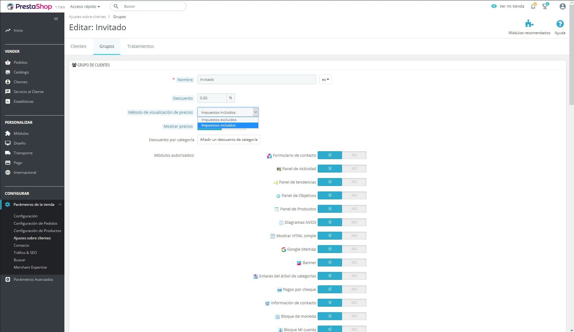 Algunas veces queremos ocultar los impuestos en los precios, incluso para un grupo específico en Prestashop.